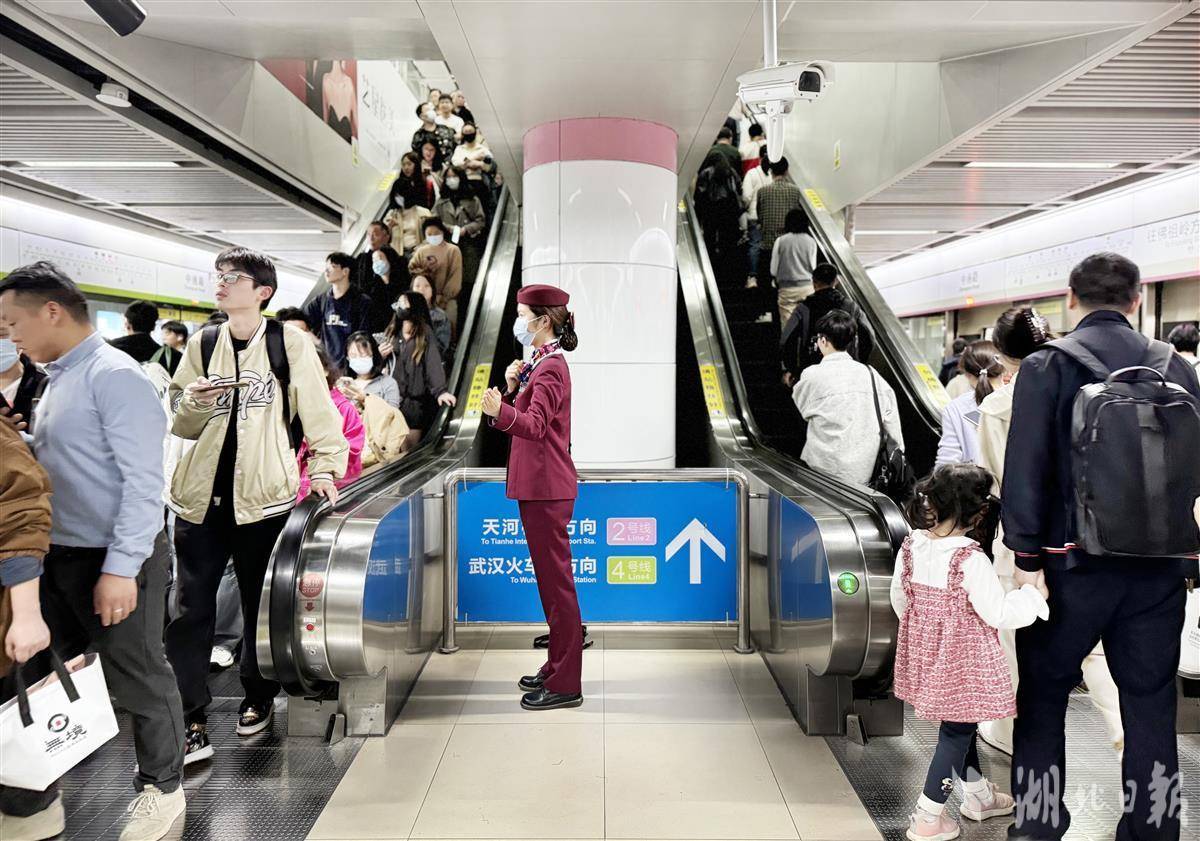 武汉地铁客流数据显示,3月30日武汉旅游景点站点客流增长明显,例如8号线梨园站集散量达到8.8万人次,达到今年以来最高。“车站高峰客流特点是上午10至11时为出站高峰,下午3时至4时为进站客流高峰,小时集散量均超过万人次。”值班站长周雨婷介绍,针对潮汐客流特点启动大客流组织预案,下午进站时段通过调整铁马方向、进出站闸机方向增加进站通道,增加安检人员、加开无包快检通道。