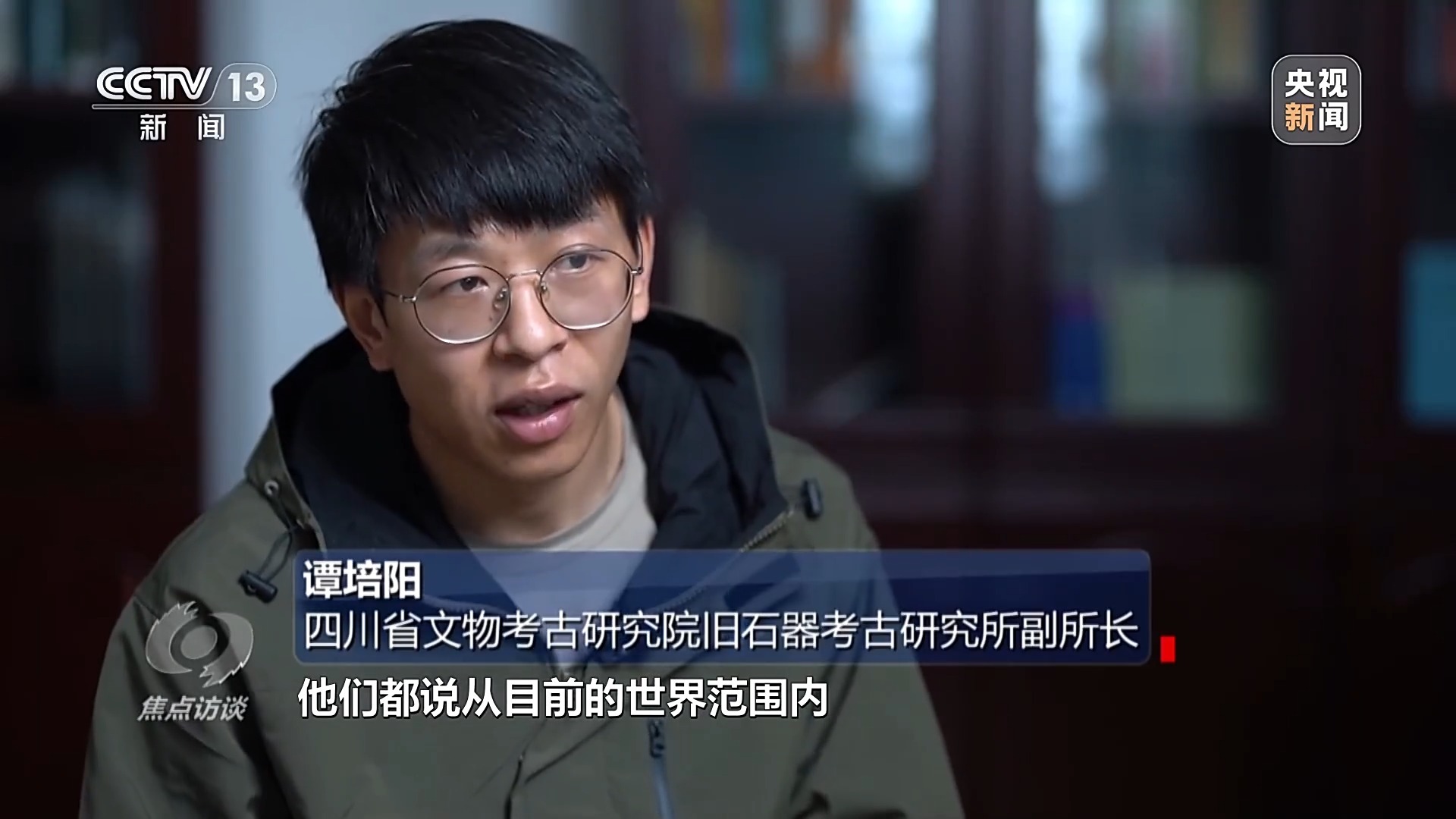 四川省文物考古研究院旧石器考古研究所副所长 谭培阳:“这个旧石器时代从两三百万一直到一万年,它占据了我们整个人类成长史的99%,这个时段弄清楚对人类的整个发展很有意义。”