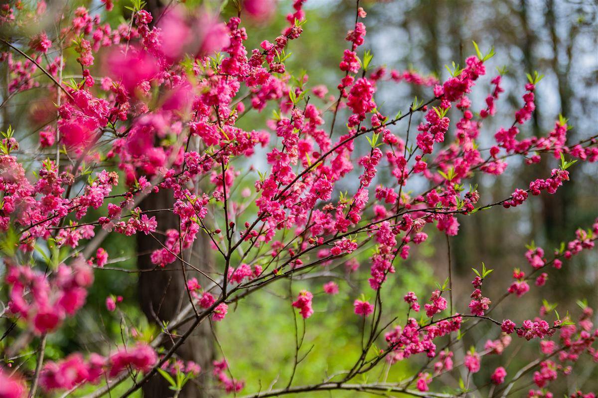 杜鹃园里5万株杜鹃初露春色,红、粉、橙、白等颜色悄然爬上绿色的枝头。有着“野生杜鹃王”之称的鹿角杜鹃率先开放,硕大的花朵笑傲枝头,满树浅紫色的花儿,尽显雍容华贵之态。园内还有稀有的刺毛杜鹃、岭南杜鹃、山麓杜鹃等野生杜鹃品种,“火烈鸟”“仙鹤”等杜鹃新优园艺品种,为武汉植物园的春色增添了更多看点。