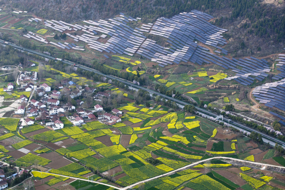 春日融融,在三秦大地陕西,层层植被披上新绿外衣,生机勃勃的作物为田野点缀出缤纷色彩。