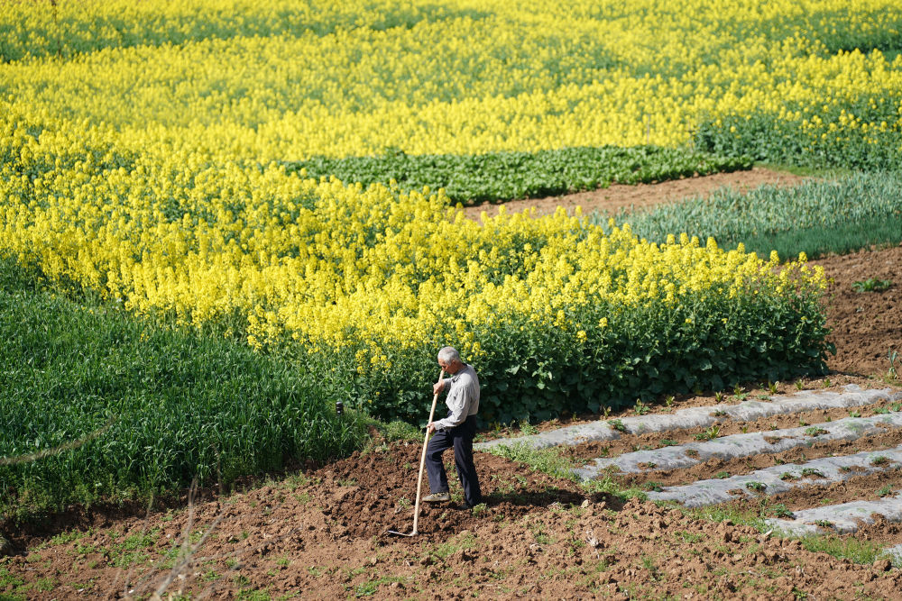 3月21日,村民在陕西汉中市南郑区梁山镇的农田中劳作。新华社记者 邵瑞 摄