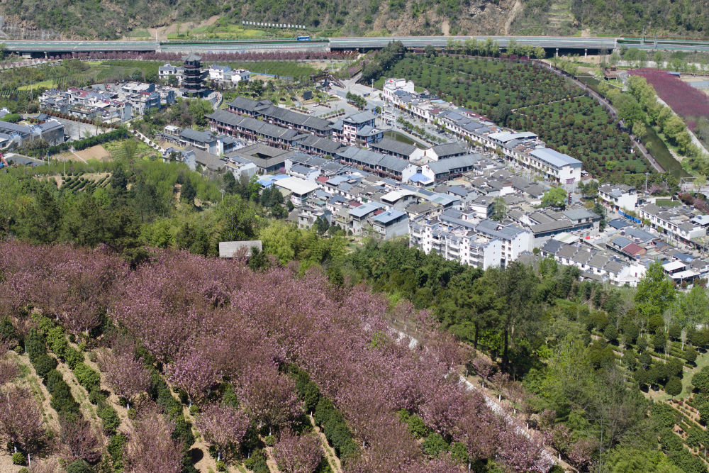 3月20日拍摄的陕西汉中市南郑区阳春镇景色(无人机照片)。新华社记者 邵瑞 摄