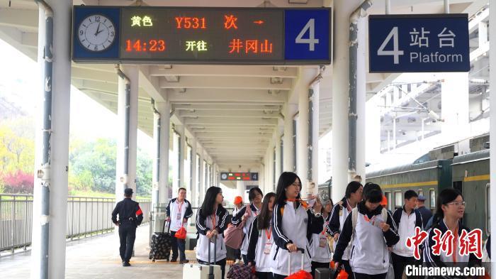 中新网福建宁德4月1日电(曾艳兰)3月31日14时23分,由宁德站开往井冈山站的首趟“赓续红色血脉 传承时代精神”红色研学旅游专列Y531次缓缓驶离福建宁德站,来自宁德市的700多名学生开启红色研学之旅。