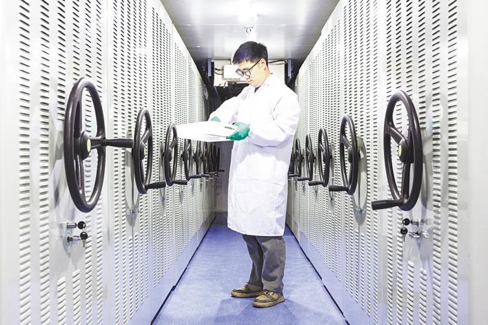 3月18日,种质资源助理研究员李浩在油料所的油料种子库内挑选油菜种子样本。