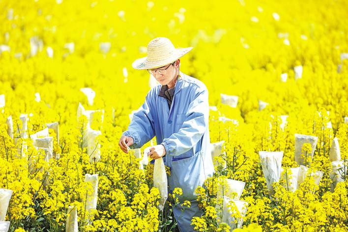 科研人员们却无暇欣赏美景。油菜花期也是杂交授粉的关键期,他们每天“泡”在花田中,观察记录、选择单株、挂牌套袋,忙碌不已。