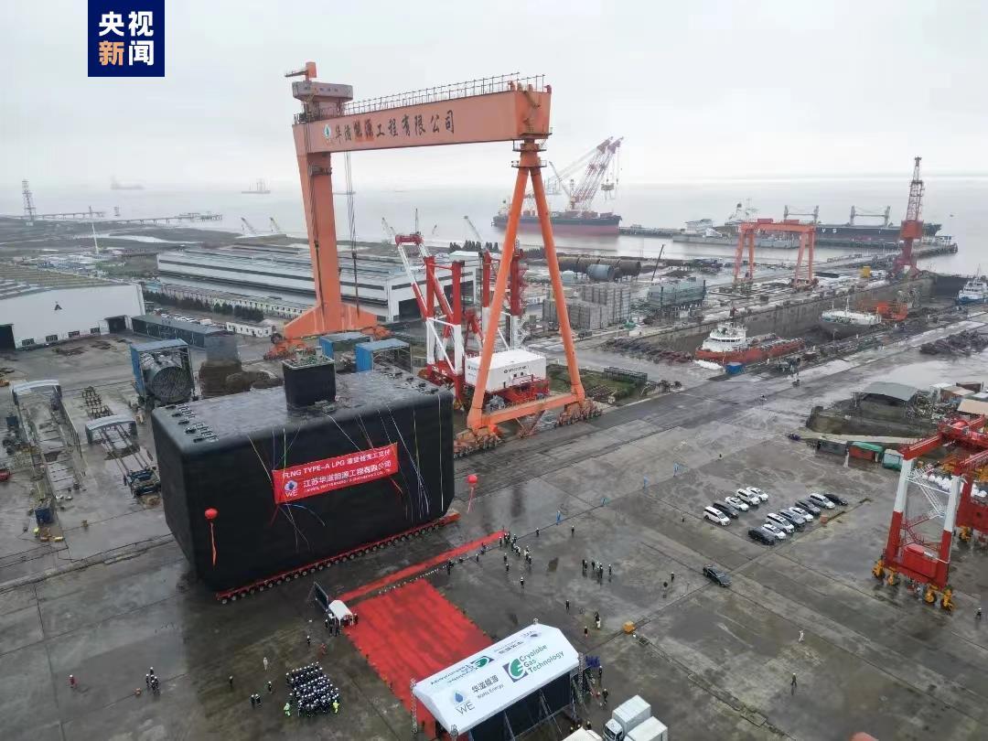 今天(4月2日)上午,由江苏一家工程企业建造的超大型液货舱在江苏启东完工交付。据介绍,此次交付的FLNG项目A型液货舱不仅为国内首制,也是目前国内容积最大规格的A型液货舱。