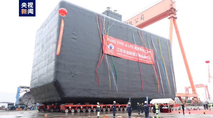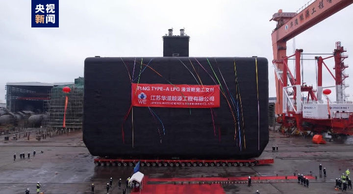 记者在现场看到,这个“超级罐头”高31米、长22米、宽45米,是专用于装载液化石油气的装置,其单个容积约23220m³,当天交付了一对“双子星”液货舱。据介绍,该项目自去年8月正式开工到交付,仅用时8个多月,其建造核心工艺、关键配套均由我国企业自主完成,实现了该型FLNG的关键储存装置建造的国产化。