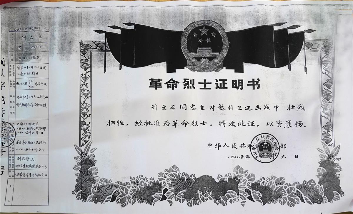 “我的二伢,18岁当兵,20岁就走了。要是活到现在,也有50多岁了啊!”面对记者,戴着墨镜的刘母语音哽咽。刘文平的哥哥刘文桥解释说:“弟弟牺牲后,妈妈哭干了眼泪,也把眼睛哭坏了,前两年才做的手术,见不得强光。”