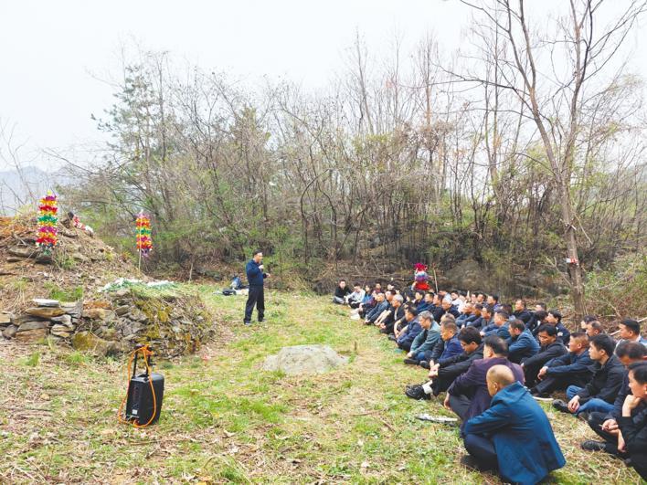 4月1日,李仁喜在红军墓前,为大家讲解红二十五军在郧西的战斗历史。