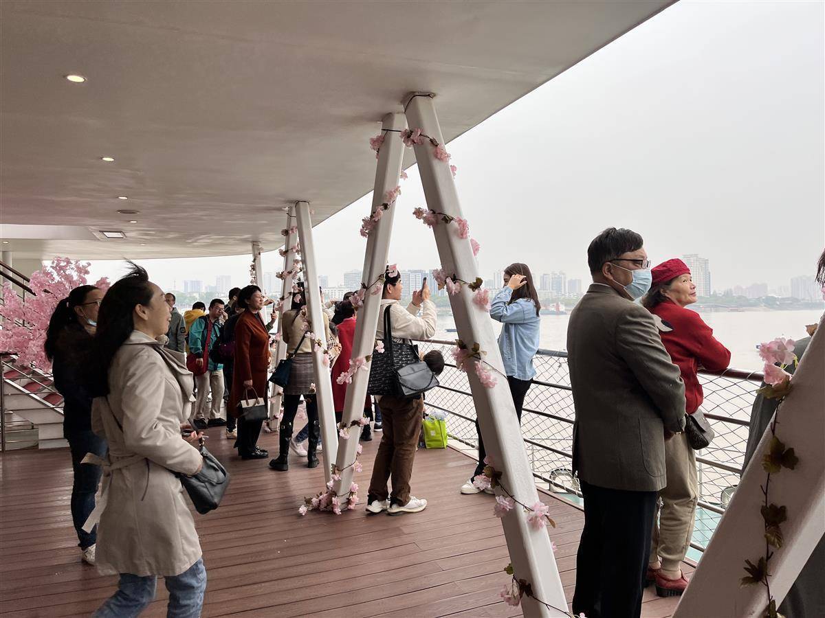 “武汉的风景很美丽,白天有不同于晚上的美,虽然今天有一些小雨,但是穿过长江大桥的感觉还是很震撼。”来自武汉的裴女士带着她的孙女来乘坐了白天游,“武汉是座美丽的城市,不仅城市大,格局也大,没想到这么豪华的游船能够免费预约到。”来自长沙的钱小姐说。