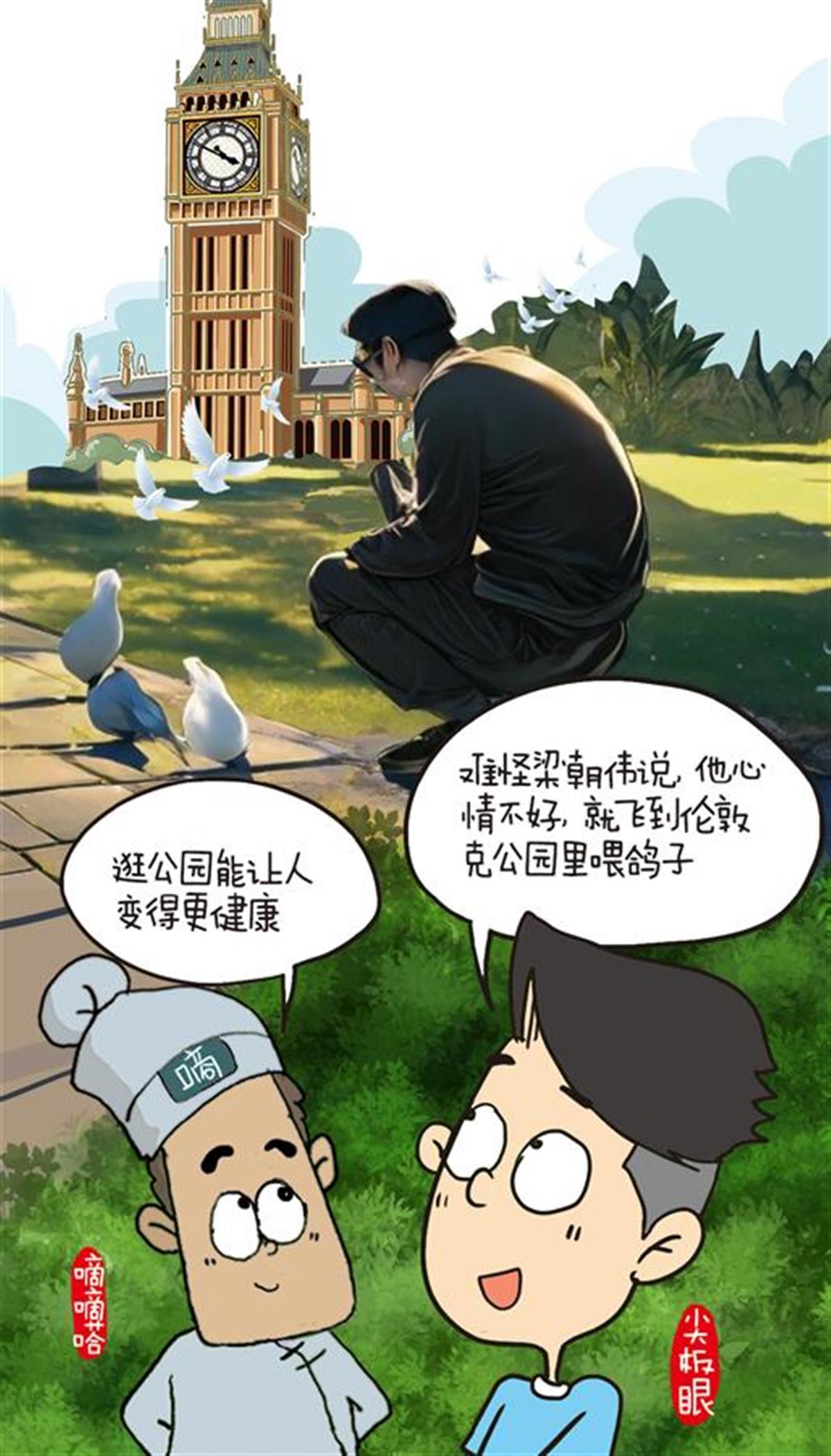 嘀嘀嗒:难怪梁朝伟说,他心情不好,就飞到伦敦克公园里喂鸽子。