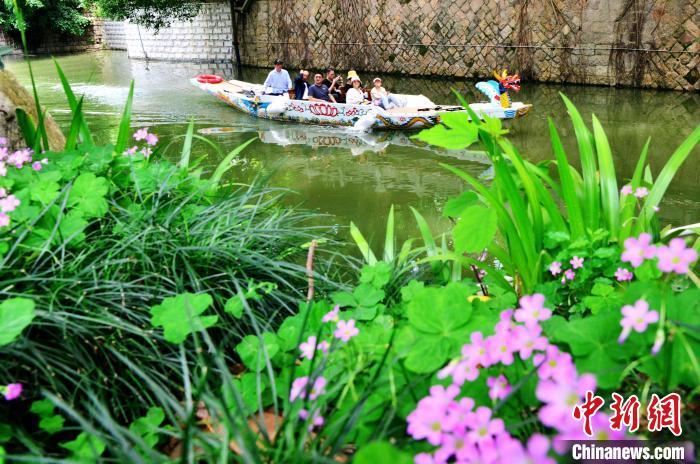 2023年5月3日,游客乘坐游乐龙舟,水上游福州。福州城区内河四通八达,水网密布。经过近几年的水系综合治理,内河游成为当地特色旅游项目。 中新社记者 张斌 摄