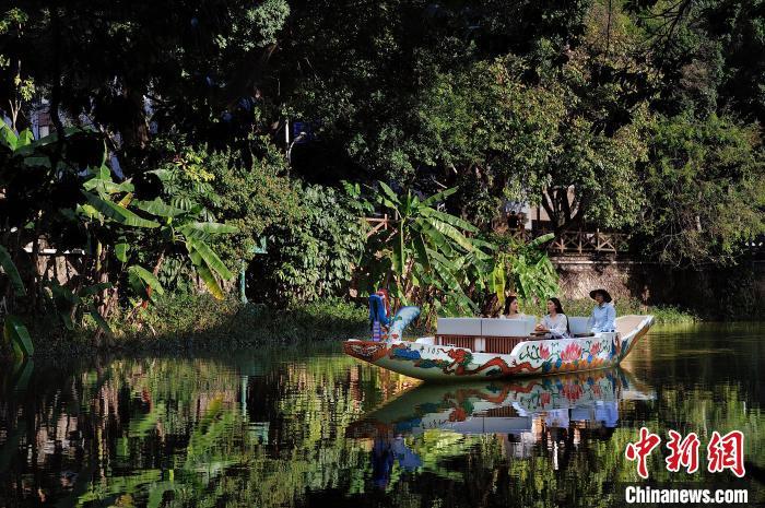 2023年3月10日,游客乘坐一艘微动力龙舟,沿着内河饱览福州的“水清、河畅、岸绿、景美”新图景。 福州市水务文化旅游有限公司 供图