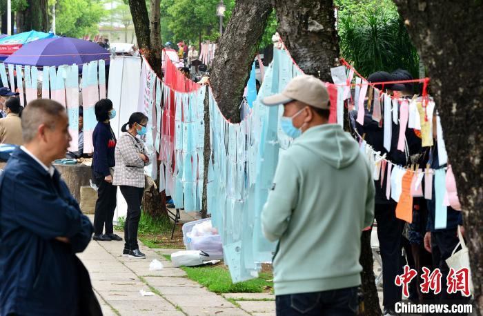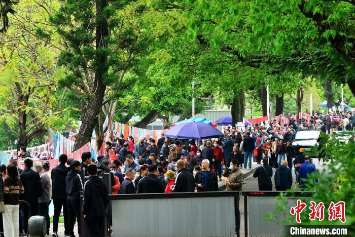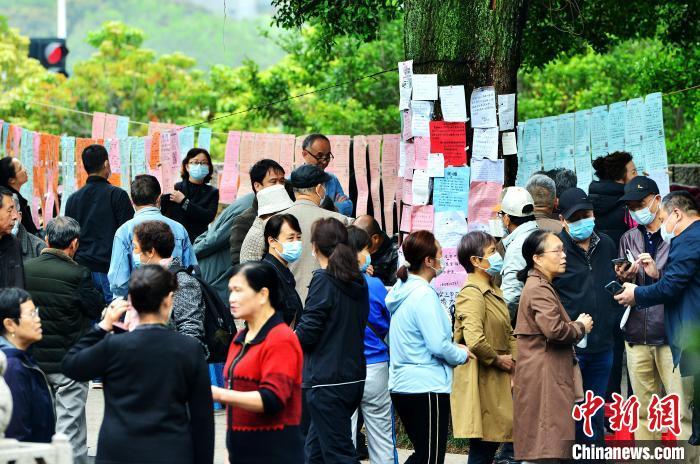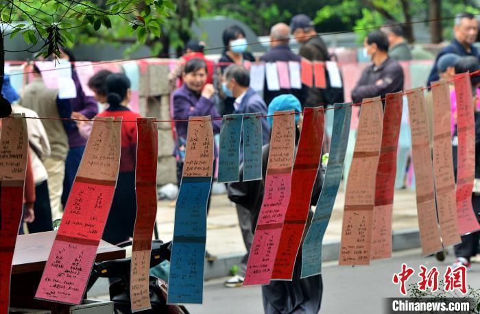 图为4月6日,福州于山传统相亲角,吸引了许多民众前来了解有关信息。 中新网记者 张斌 摄