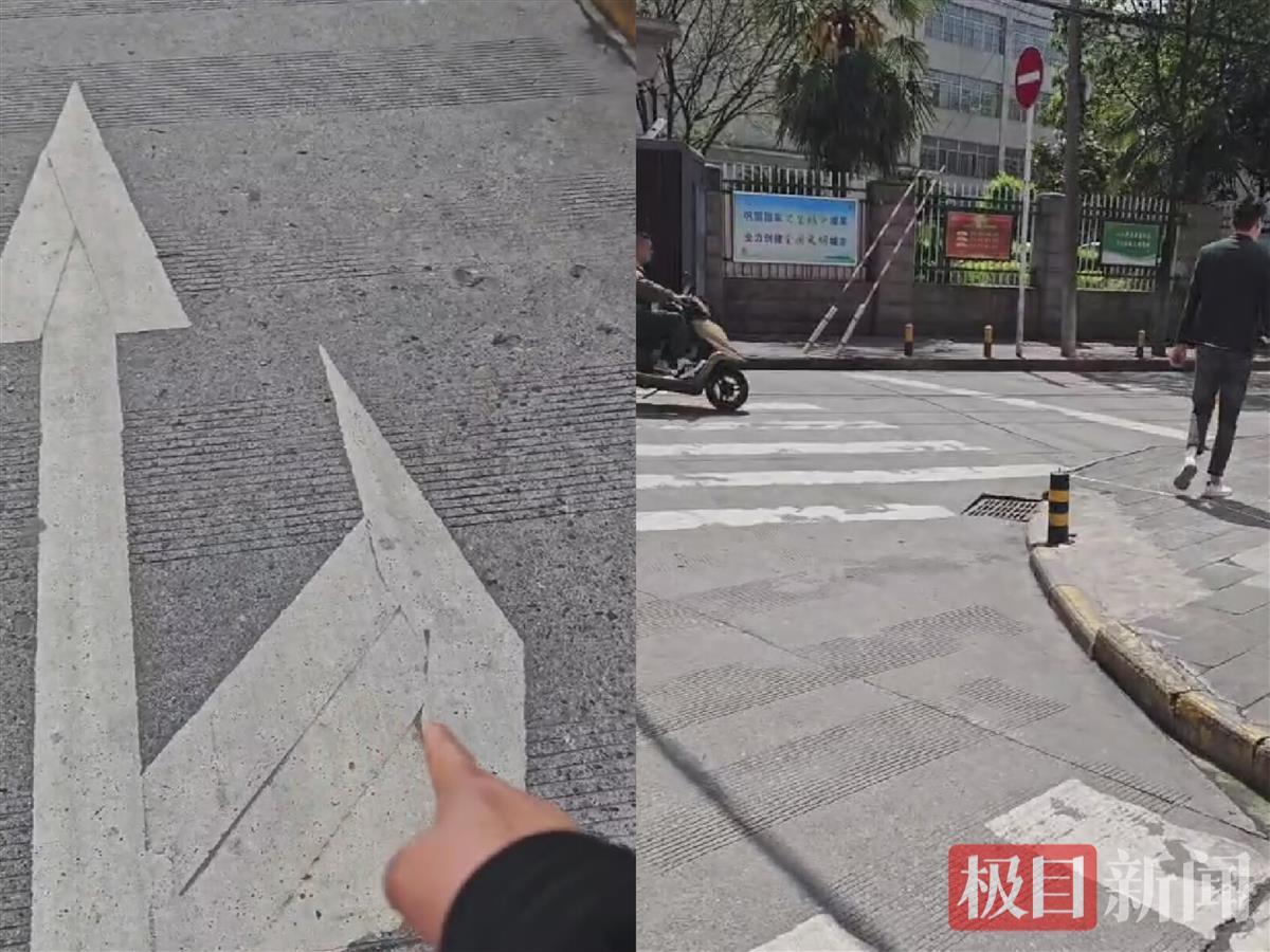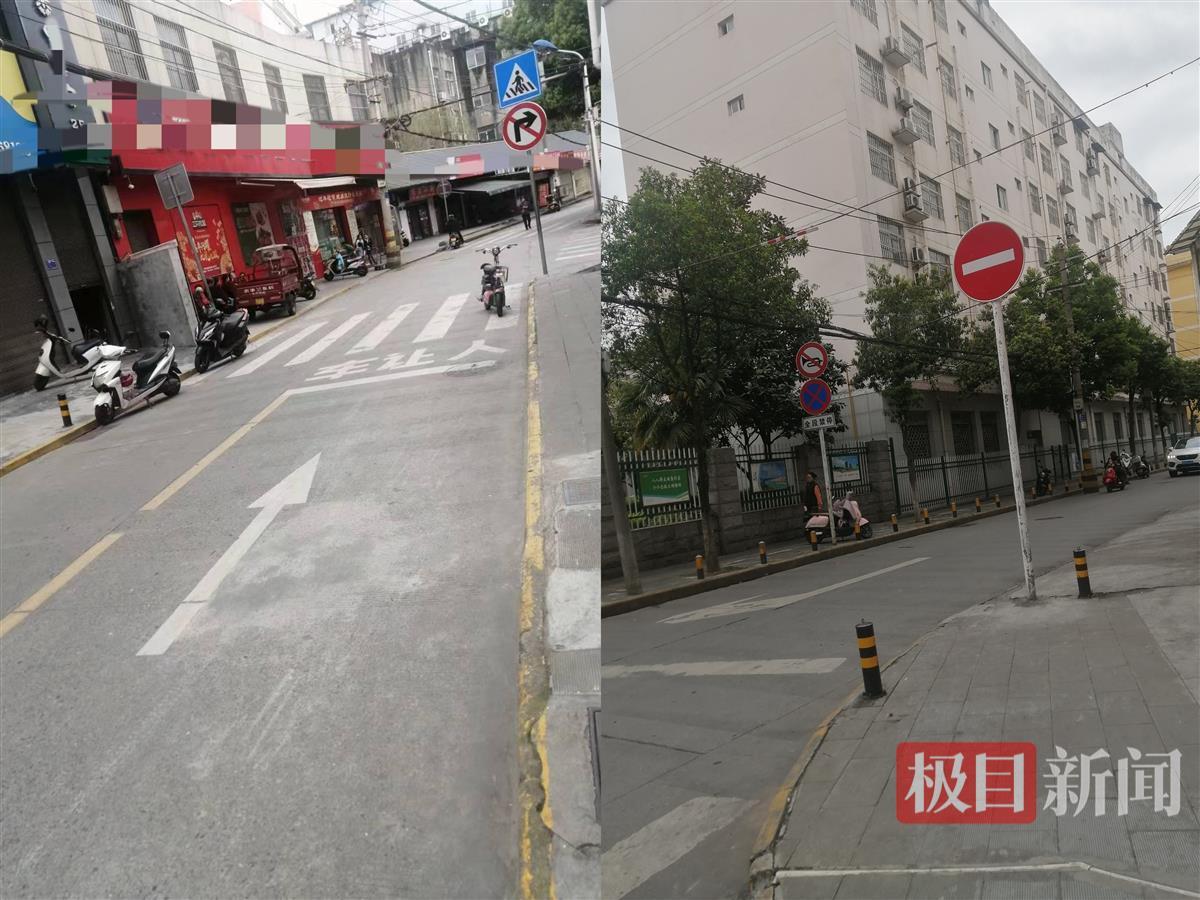 网友拍摄的事发地视频显示,该道路确实有“直行及右转”的交通指示标线,右转后的道路左侧也确实有“禁止车辆驶入”的标识牌。