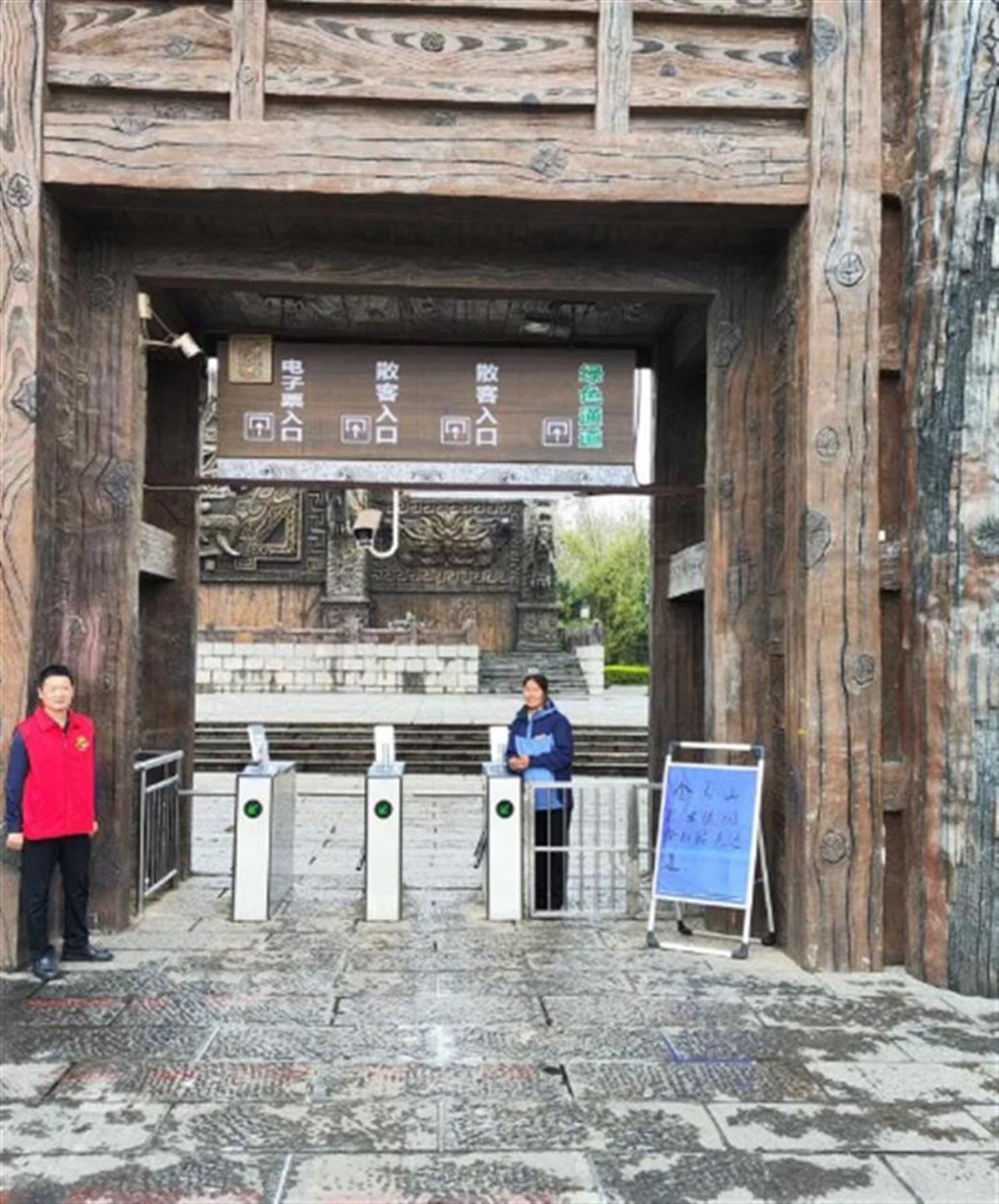 景区门前放置绿色通道提醒牌
