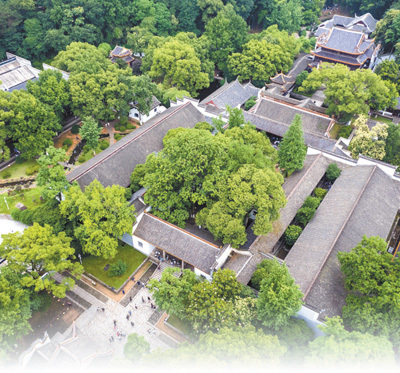 俯瞰岳麓书院(无人机照片)。 新华社记者 陈思汗摄 |