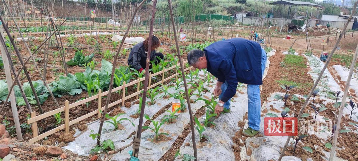 书房社区党委副书记、居委会副主任杨启一向极目新闻记者介绍,这块共享菜地其实以往是撂荒地,不但浪费还带来一系列问题,为了能合理使用,才推出了共享菜地的模式。将土地平整及完成基础建设后,再划分地块,由居民自由认领,费用按年计算,认领的居民可以享有这一年的收获权益,体验耕种的快乐,“目前30多亩地,已经全部认领完了。”