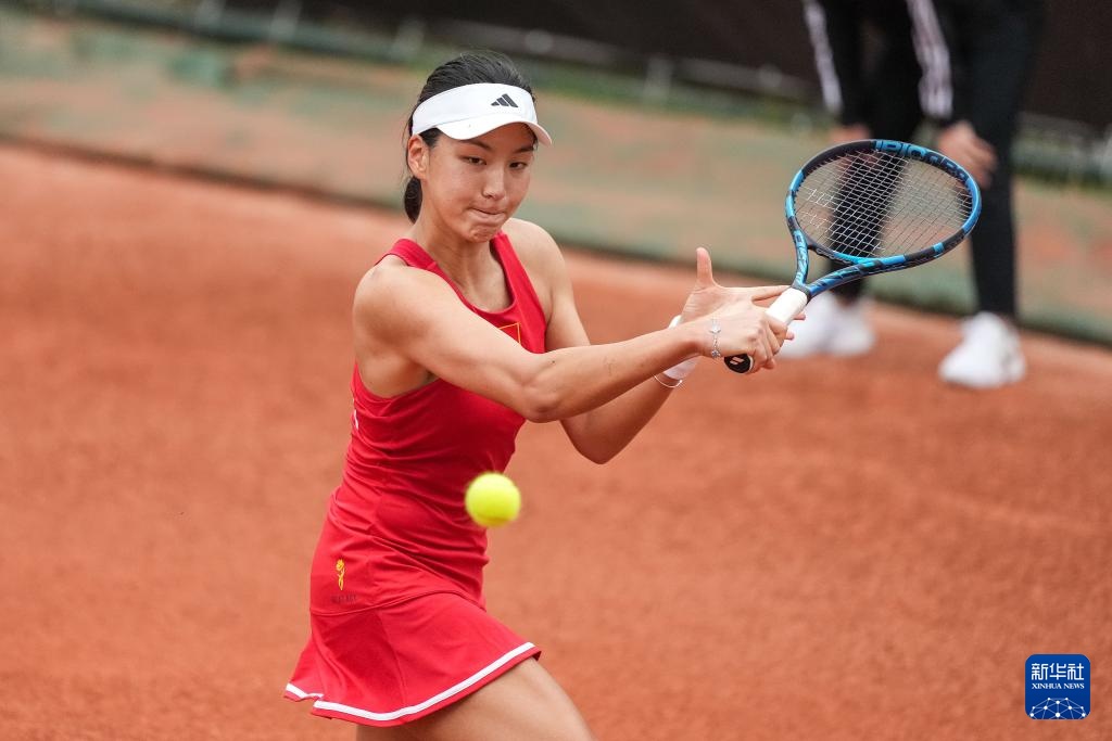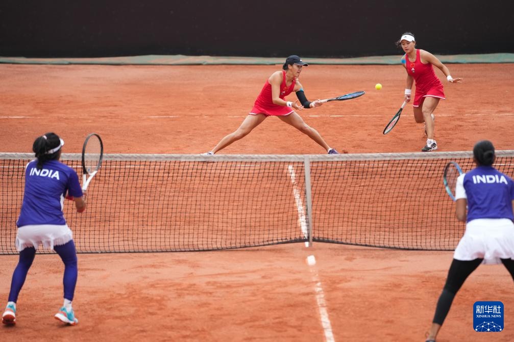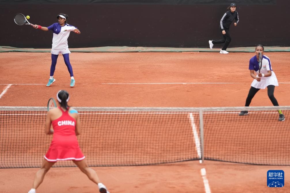 当日,在湖南长沙举行的2024比利·简·金杯国际女子网球团体赛亚大区一组比赛中,中国队3比0战胜印度队。