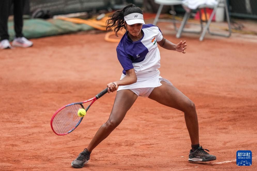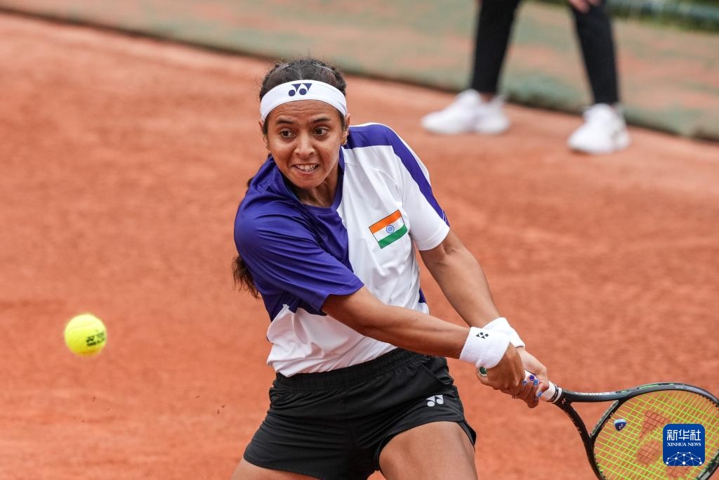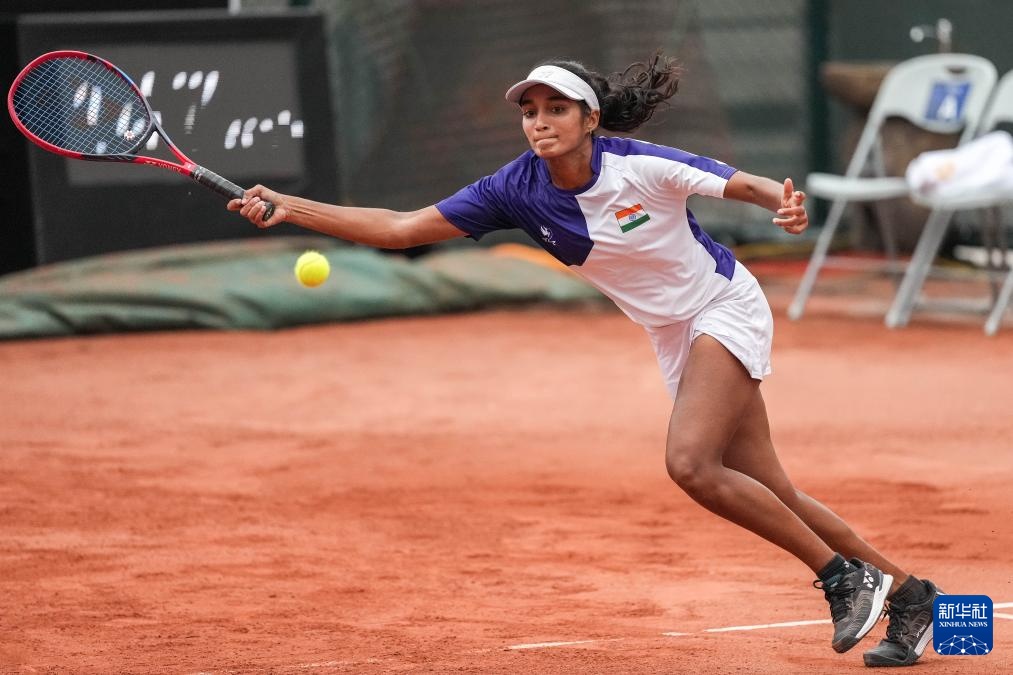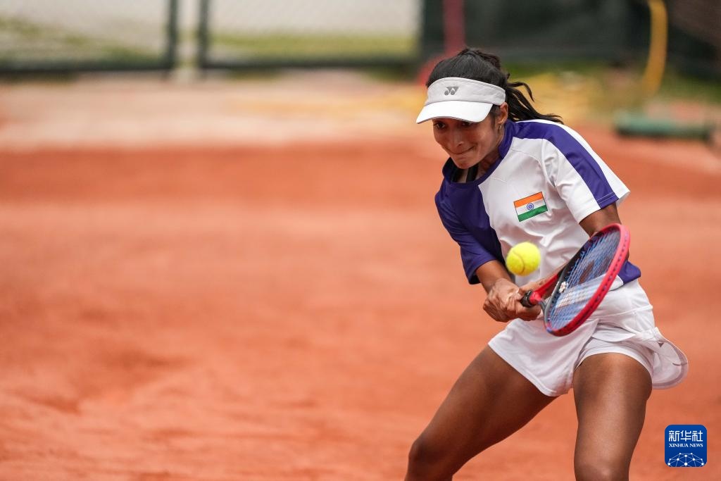 4月10日,印度队选手安基塔·拉伊娜在单打比赛中回球。她0比2不敌中国队选手郑钦文。新华社记者 陈思汗 摄