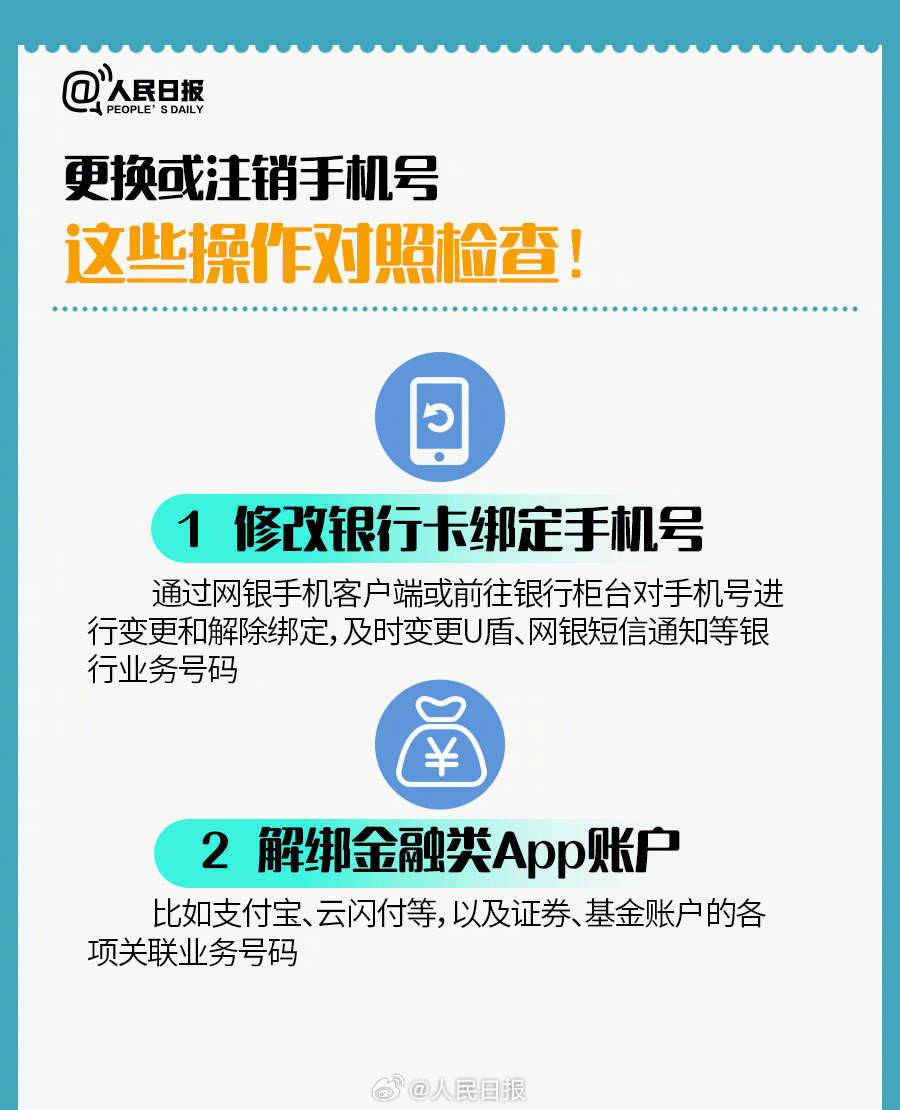 手机银行、社交媒体、云盘、网购外卖平台……更换或注销手机号时,记得及时进行解换绑操作!另外,还可使用“一证通查”功能,查查你手机号绑定了几个账号,详戳↓↓实用转存!