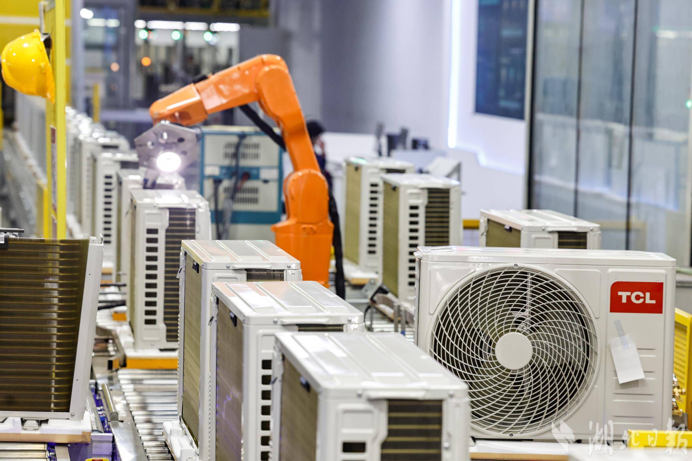 2024年4月9日,在武汉市东西湖区TCL空调武汉智能制造产业园内,各条生产线正24小时不停运转。