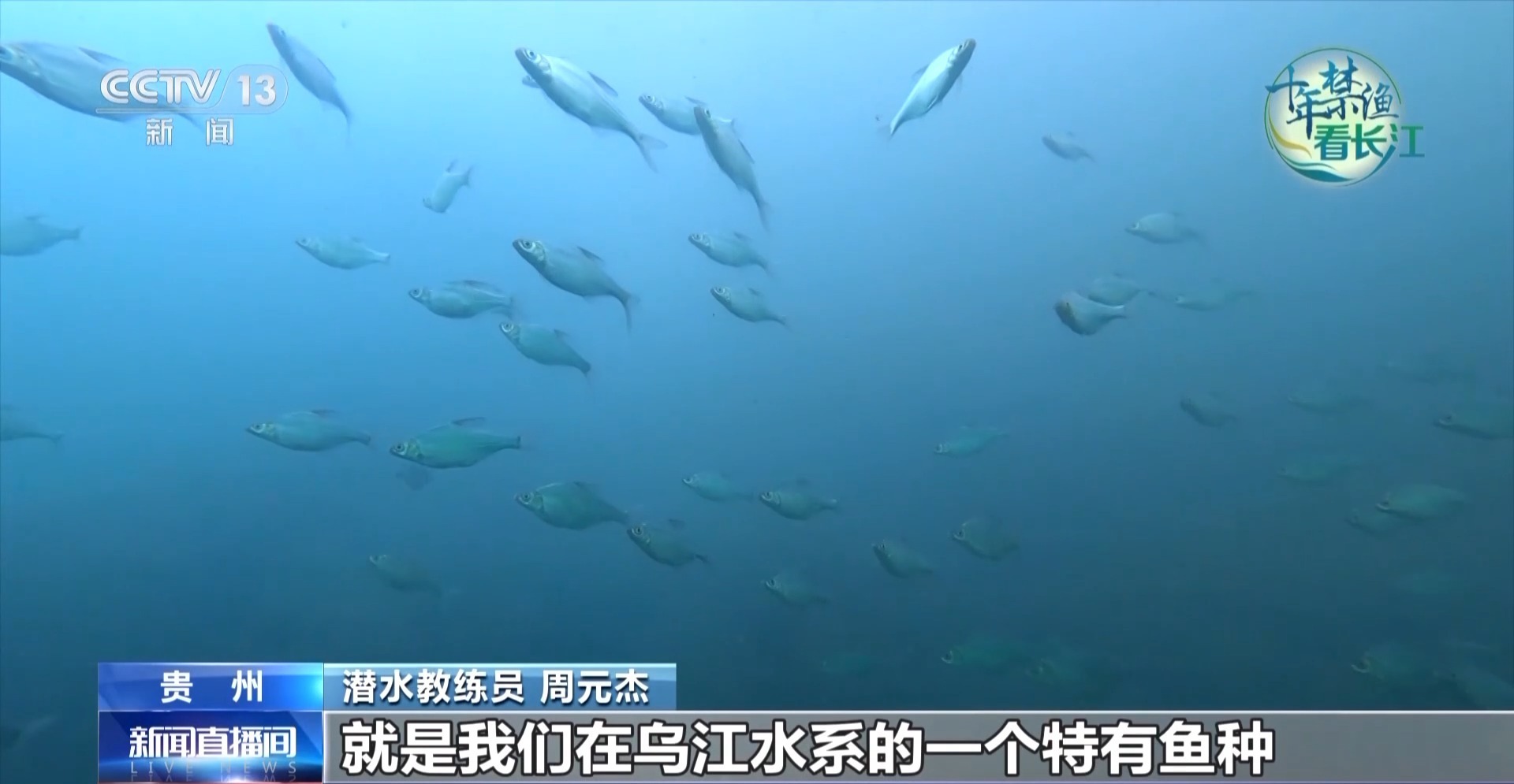 潜水教练员 周元杰:在乌江里面可以看到一群一群扁扁的鱼,这是乌江水系的一个特有鱼种,学名叫三角舫。
