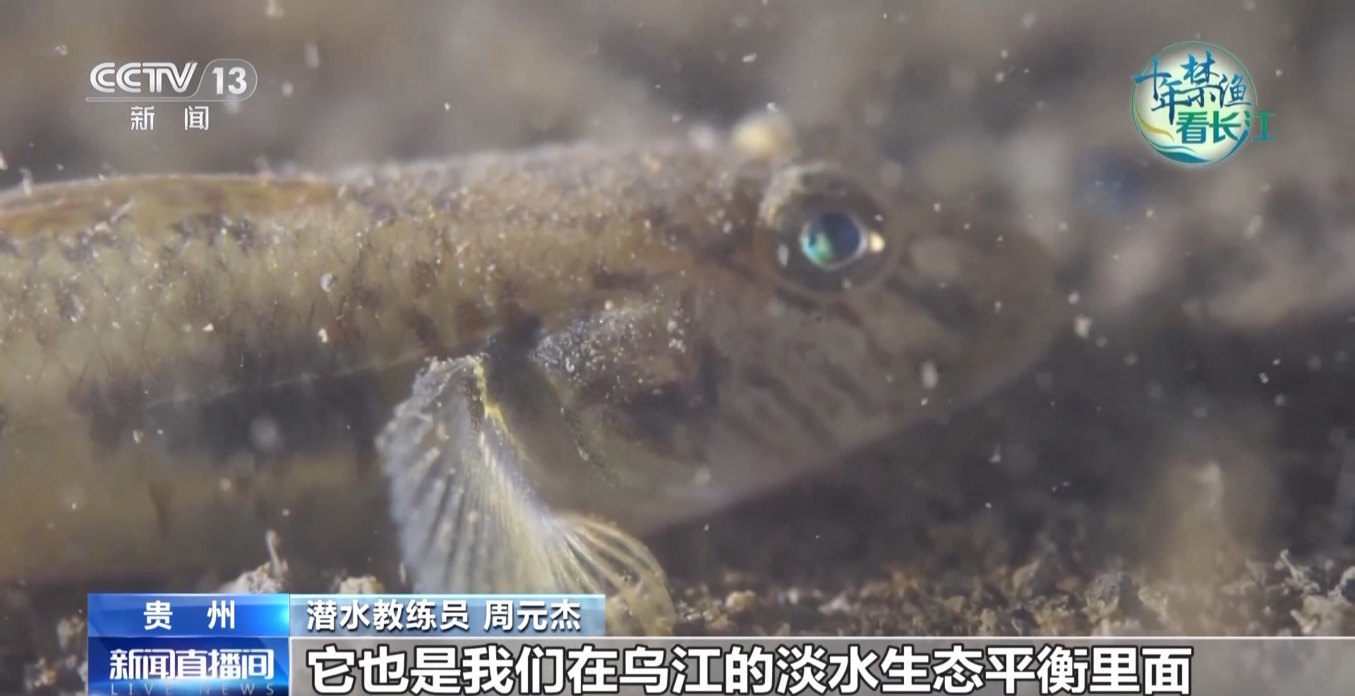潜水教练员 周元杰:这个是虾虎鱼,拍得很清楚。它也是我们在乌江的淡水生态平衡里面很重要的一环。