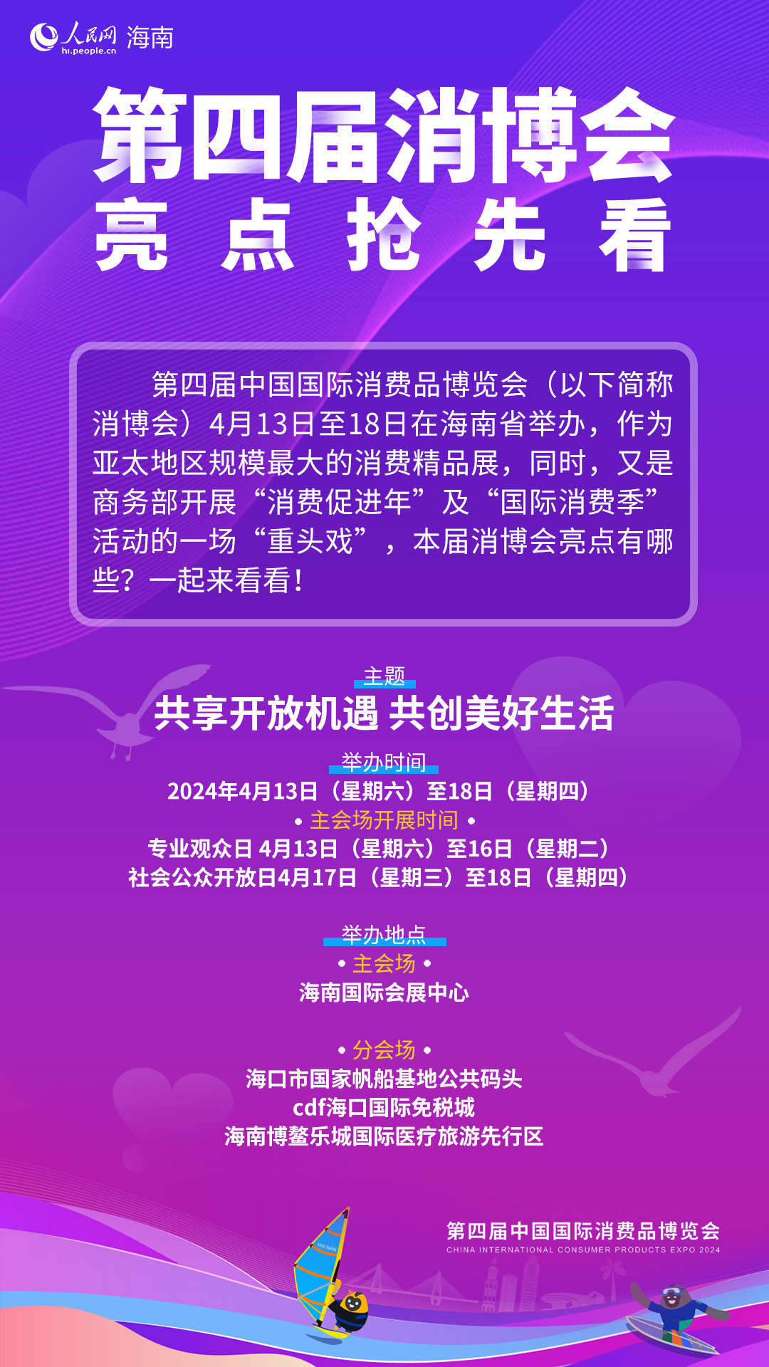 第四届中国国际消费品博览会(以下简称消博会)4月13日至18日在海南省举办,作为亚太地区规模最大的消费精品展,同时,又是商务部开展“消费促进年”及“国际消费季”活动的一场“重头戏”,本届消博会亮点有哪些?一起来看看!