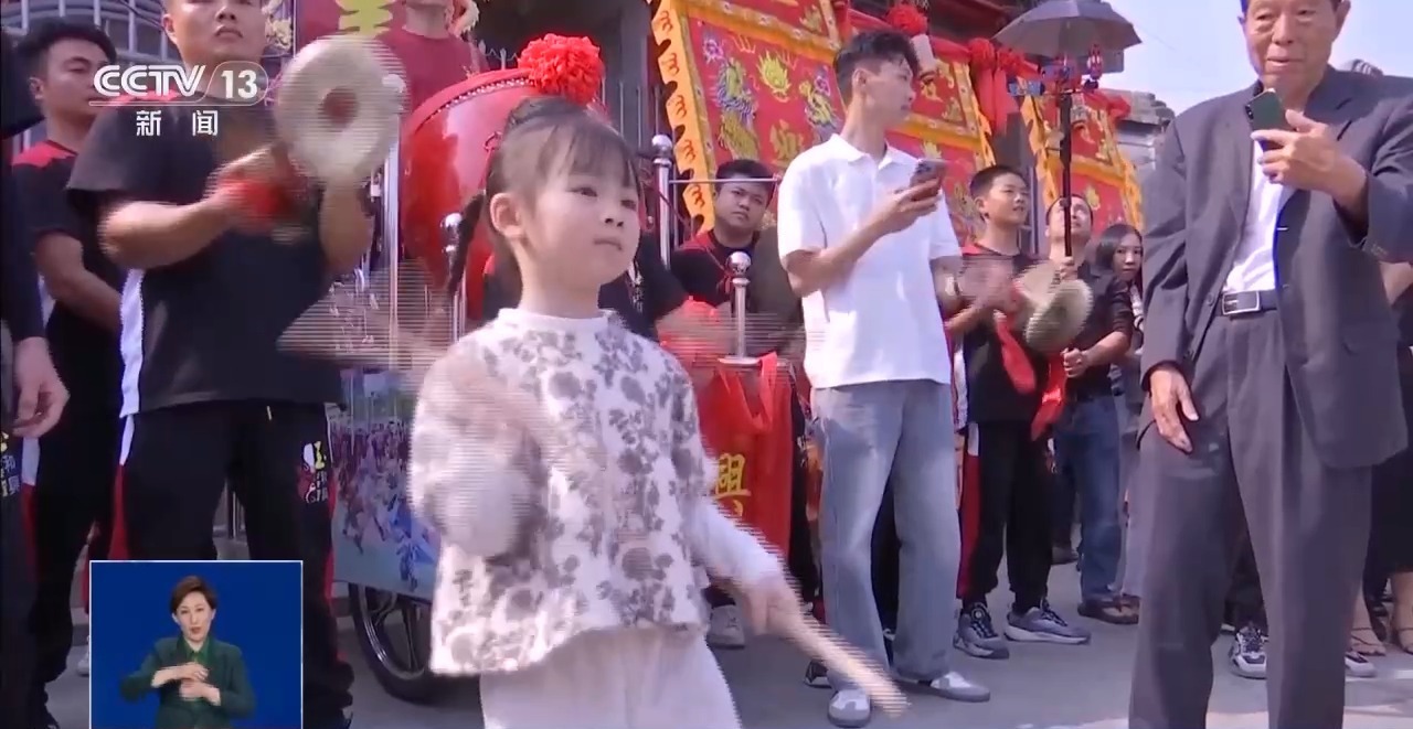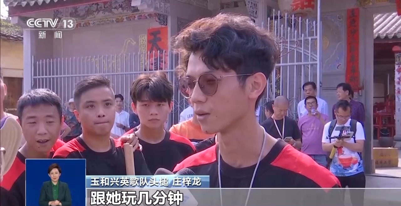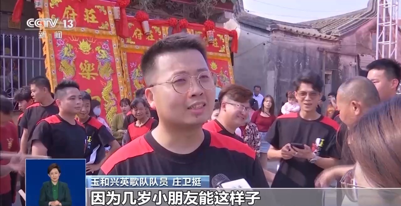 玉和兴英歌队头槌 庄梓龙:本来队伍是要往前走的,但是我们还是停下来跟她玩几分钟。她打的招式都是英歌舞里面最经典的招式。这么小的孩子能做到这种动作,还有这种速度是很难得的。