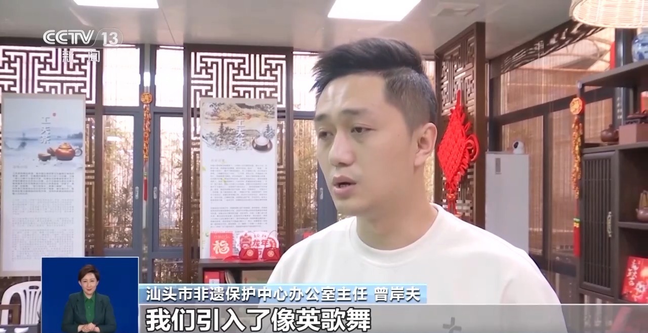汕头市非遗保护中心办公室主任 曾岸夫:我们引入了像英歌舞、汕头工夫茶艺、潮州歌册等项目,带入学校第二课堂。寒暑假的时候,我馆还开展了非遗少年行活动,与学校联合开展包括青少年文化志愿者的培训,成立非遗小小宣讲团,推动汕头市非遗的传承与发展。