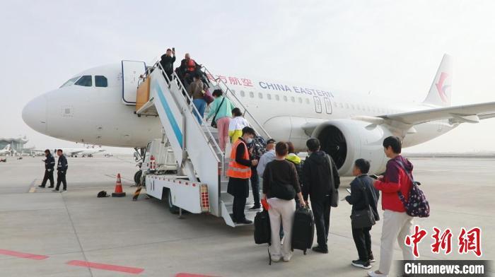 4月15日,兰州至香港直飞正班航班正式开通。图为游客登机。(甘肃省民航机场集团供图)