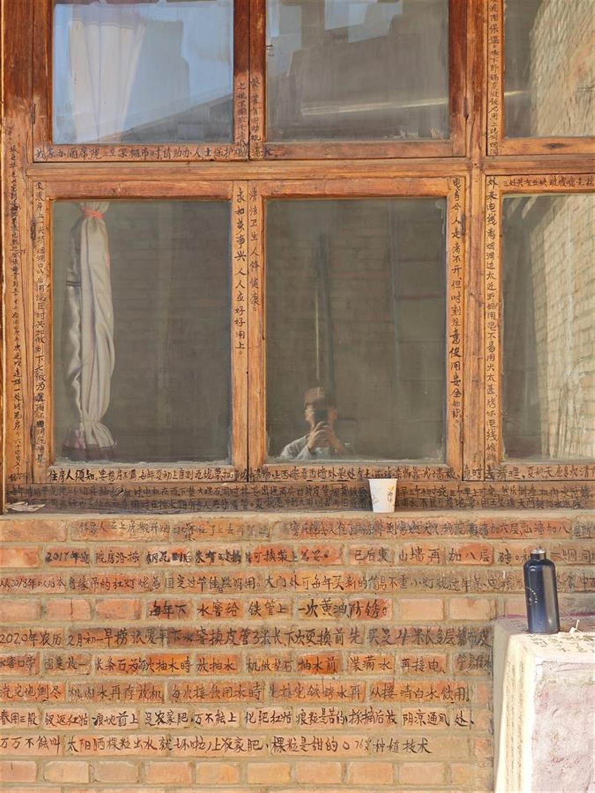 张宏刚记得,1998年,父亲张福青开始一边修缮房屋,一边在砖墙上写字。在他留下的文字中,出现频率最多的,是关于房屋修缮的内容。
