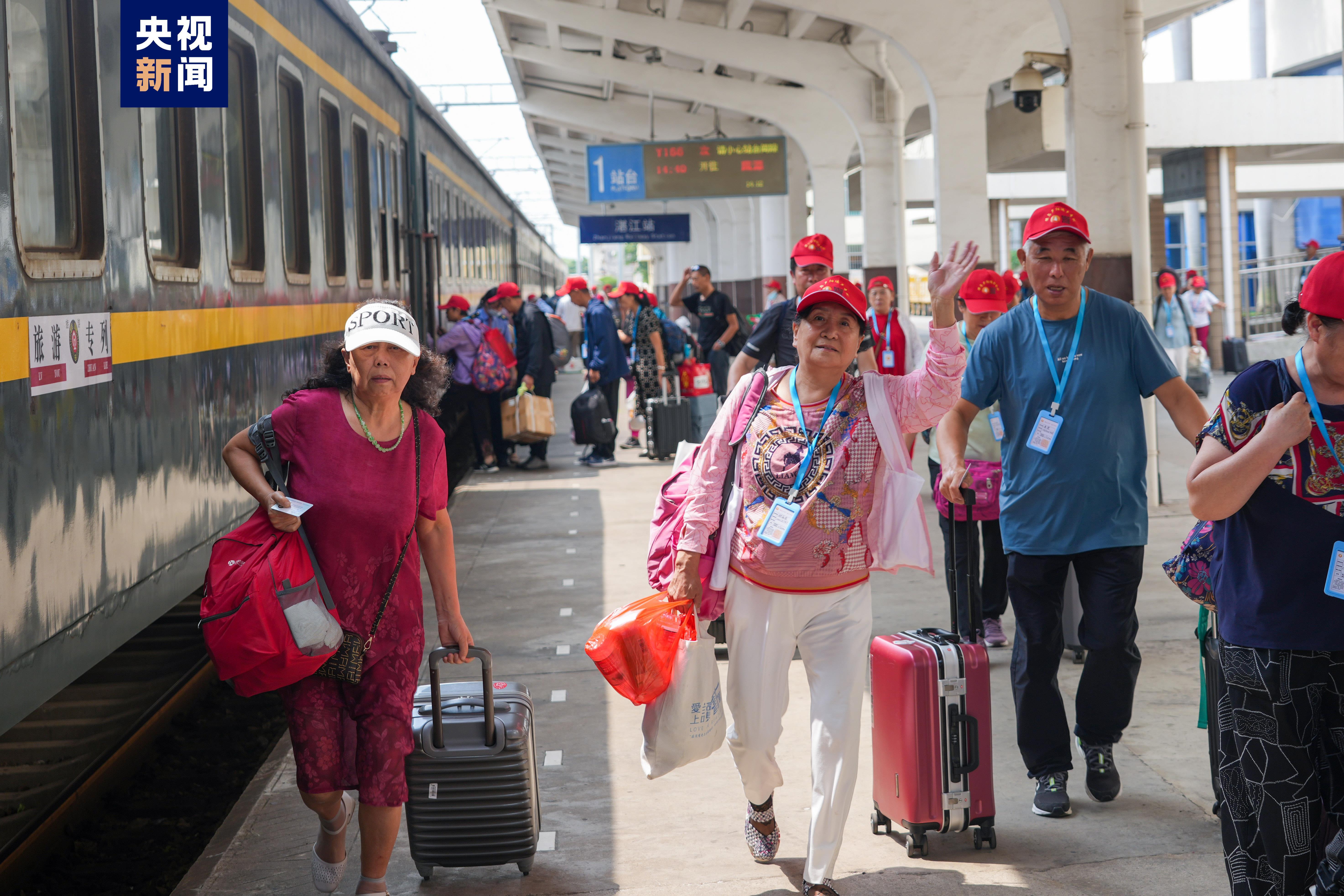 4月15日14时40分,800余名“候鸟”老人搭乘国铁南宁局开行的“候鸟夕阳”旅游专列Y166次从湛江站出发,将途经鹰潭、杭州、上海、沈阳、哈尔滨等城市,开启为期九天的返乡休闲游之旅。
