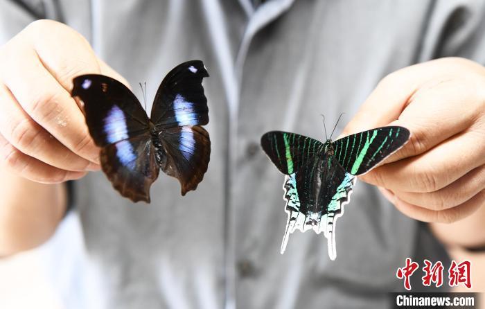 图为唐安科展示蝴蝶标本。中新网记者 周毅 摄