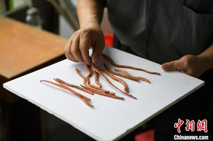 图为唐安科展示即将制作完成的沙蚕标本。中新网记者 周毅 摄