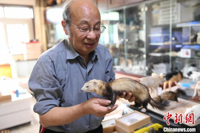 图为唐安科展示动物标本。中新网记者 周毅 摄