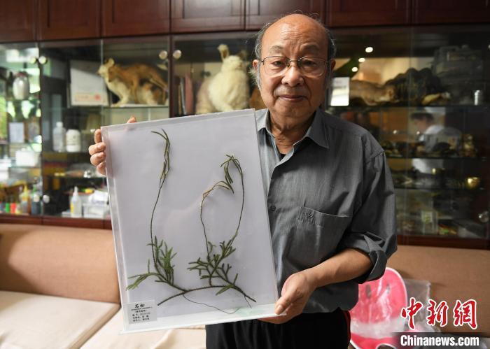 图为唐安科展示植物标本,石松。中新网记者 周毅 摄
