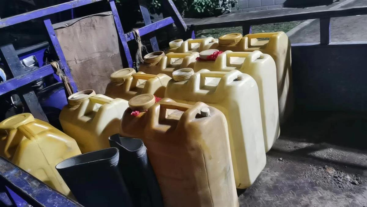 现场查获作案车辆、油桶等