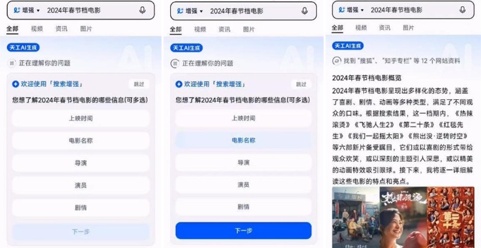 Query:2024年春节档电影;“天工3.0”理解并追问用户需求。