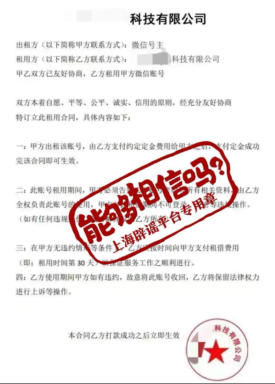上海辟谣平台调查发现,不少出租过账号的网友经历大致与小柳类似,只是有些细节差异:有人看似签了“租赁合同”,同样未能按期拿到租金,最后发现合同是假的;有人租出去的账号被设置为“青少年模式”,账号监护人变成了陌生人,原号主反而无法启用全部功能;有人好不容易拿回了账号,却发现在“出租”期间,账号成为涉黄、涉赌内容的“点赞者”……