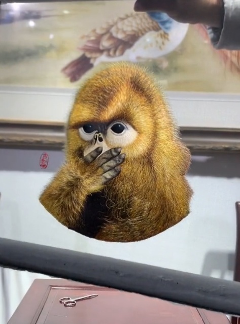 一面是调皮的小猴子正捂嘴“思考”