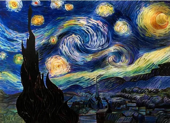 用苏绣还原的名画《星空》
