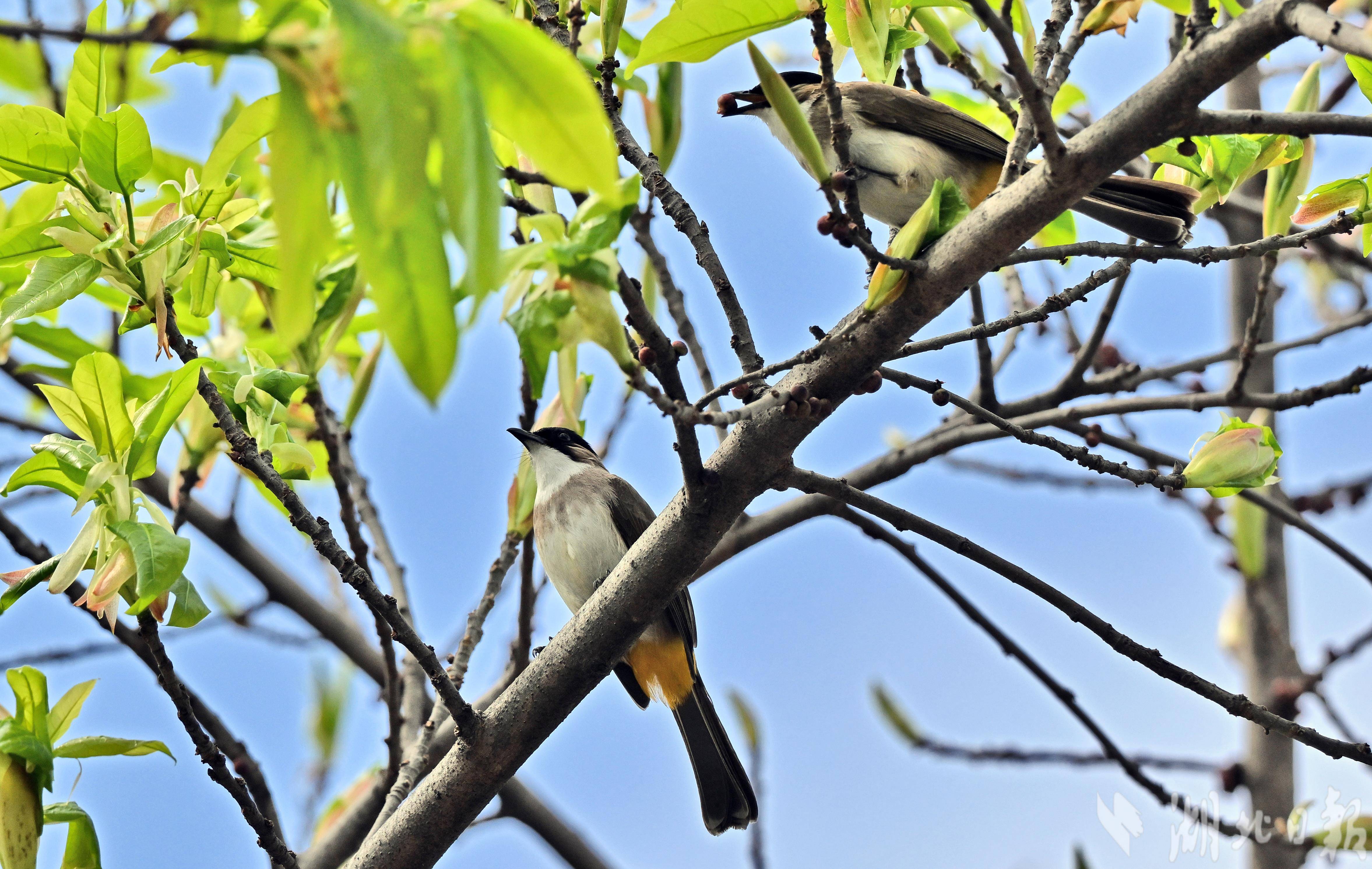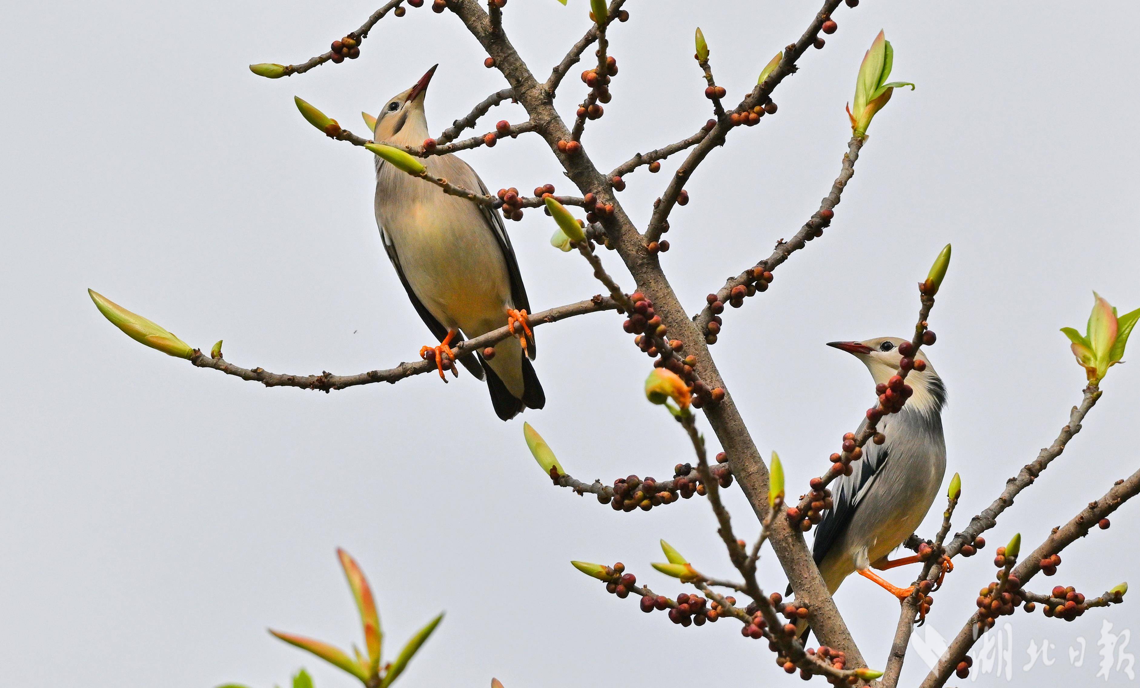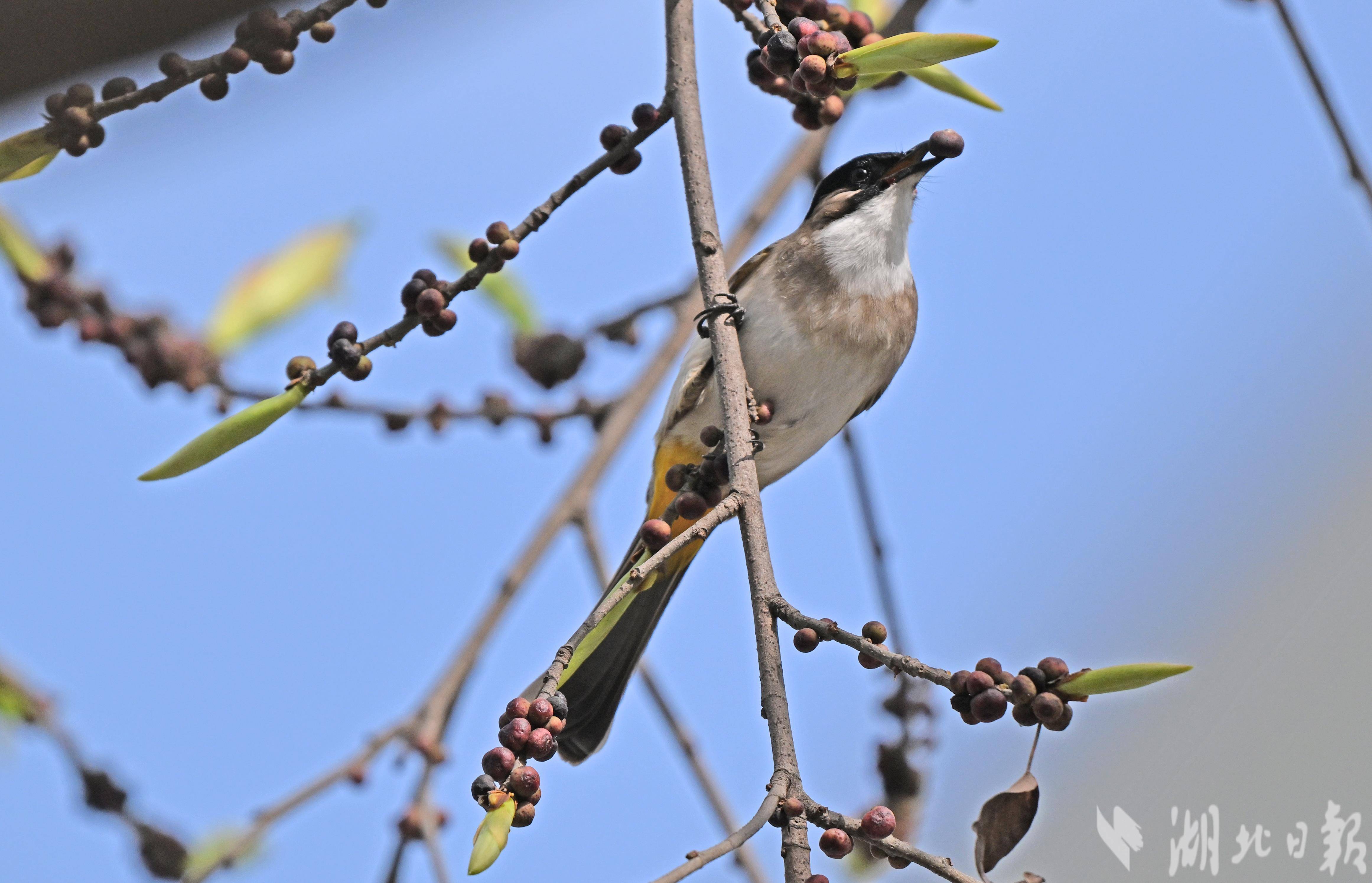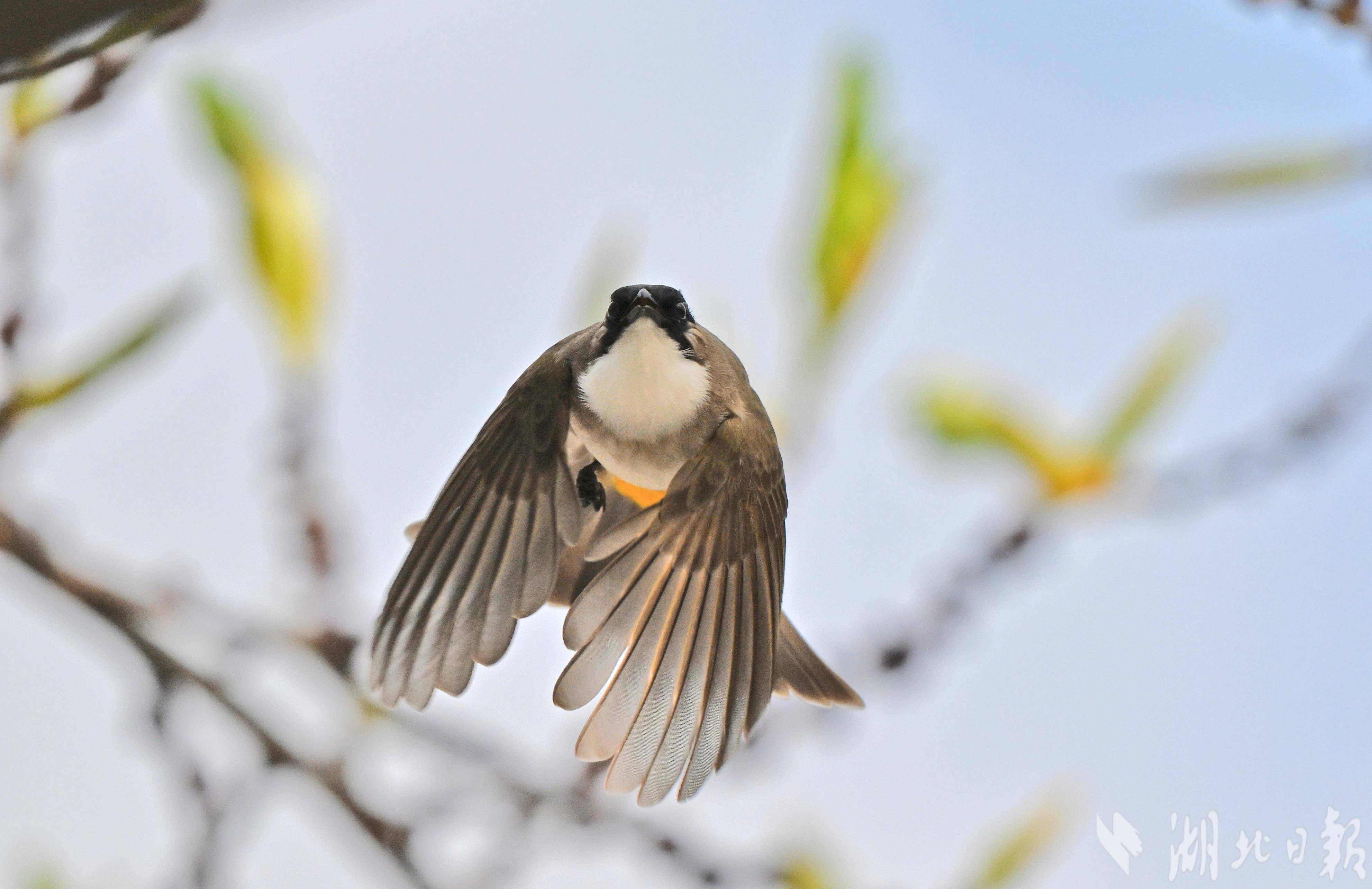 4月17日,兴山县城古夫镇内的黄桷树开始萌发新芽,树干上的果实成为鸟儿的美食,古夫镇路边行道树基本是黄桷树,春天落叶,金色的落叶与修长的新芽间小鸟嬉戏觅食,这样的景象是时下兴山街头处处可见的画面。