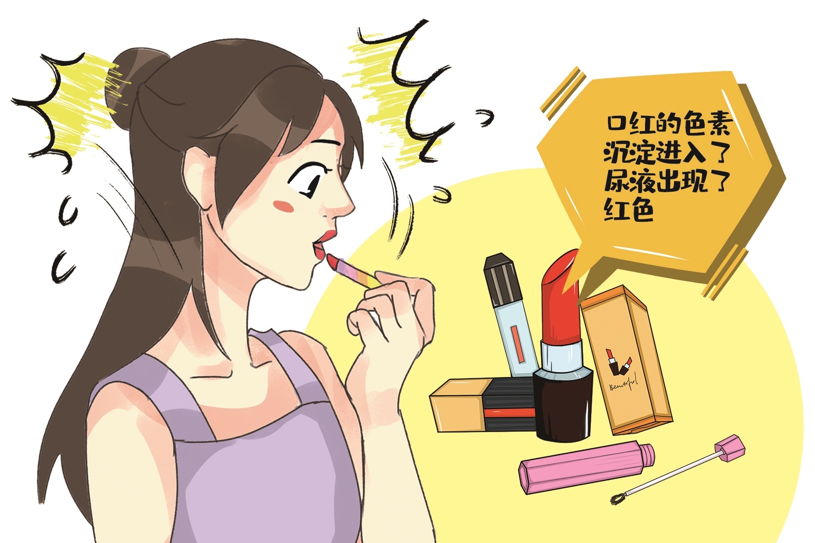 日常涂抹口红不会导致尿液变红