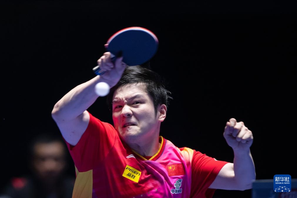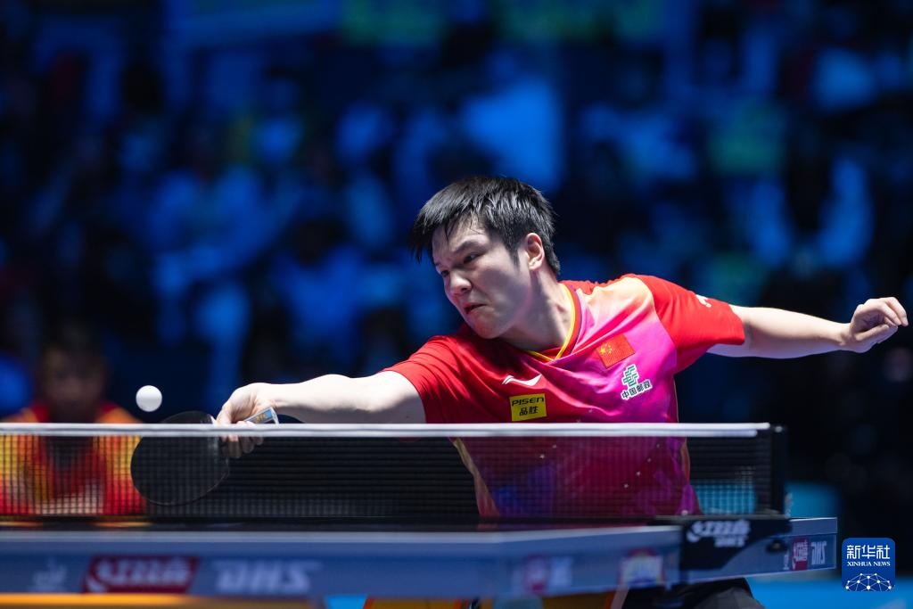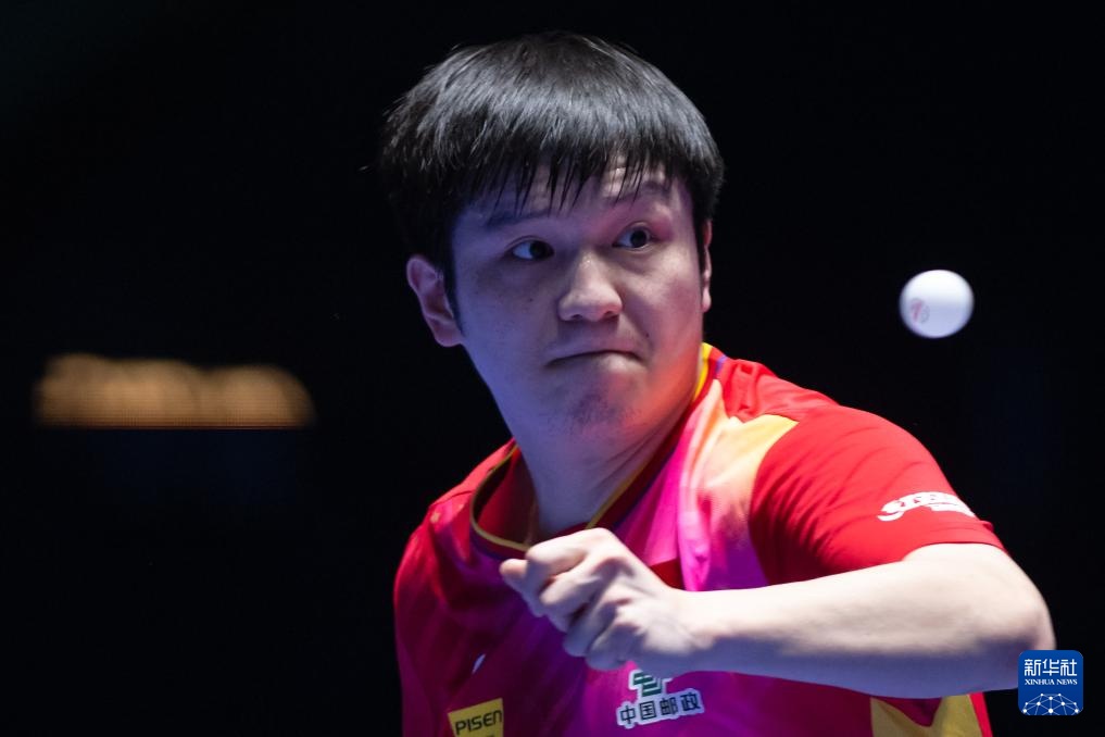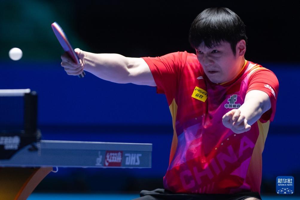4月17日,樊振东在比赛中回球。新华社记者 张金加 摄