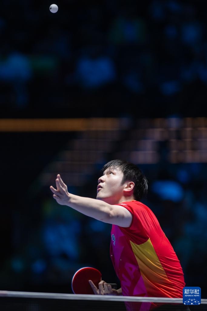 4月17日,樊振东在比赛中发球。新华社记者 张金加 摄