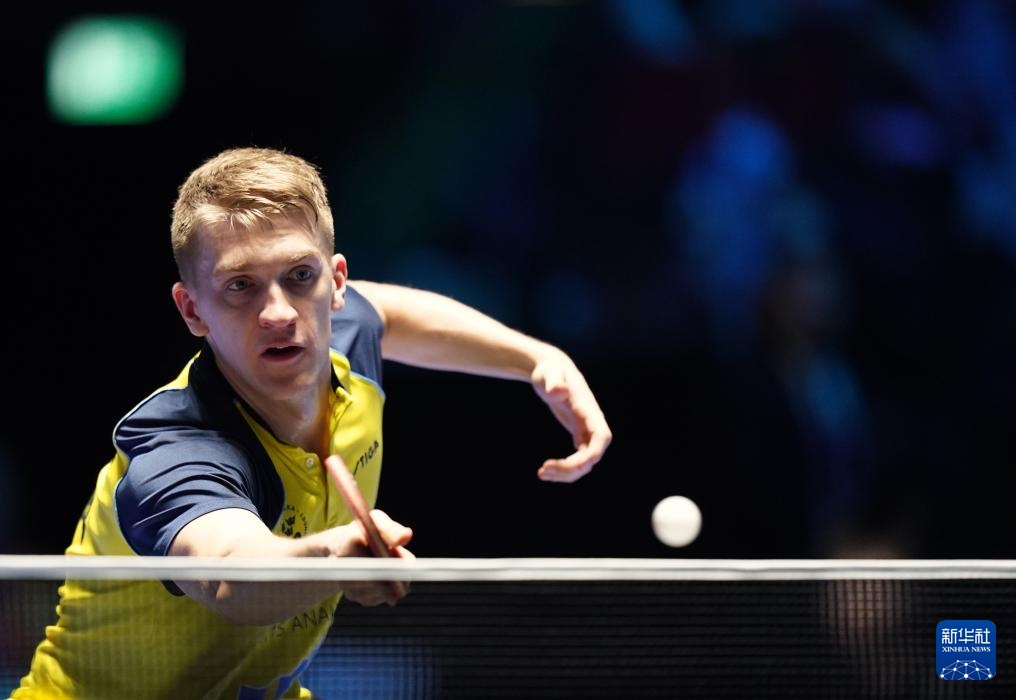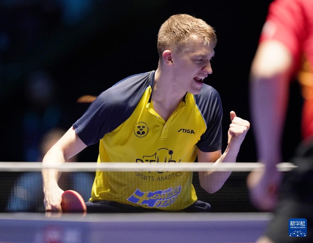 4月18日,瑞典选手卡尔伯格在比赛中回球。新华社记者 王申 摄