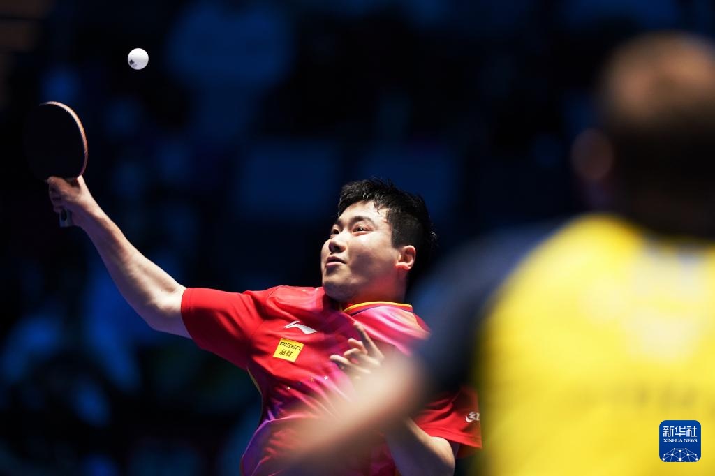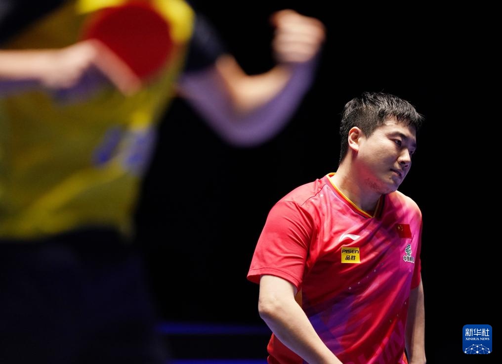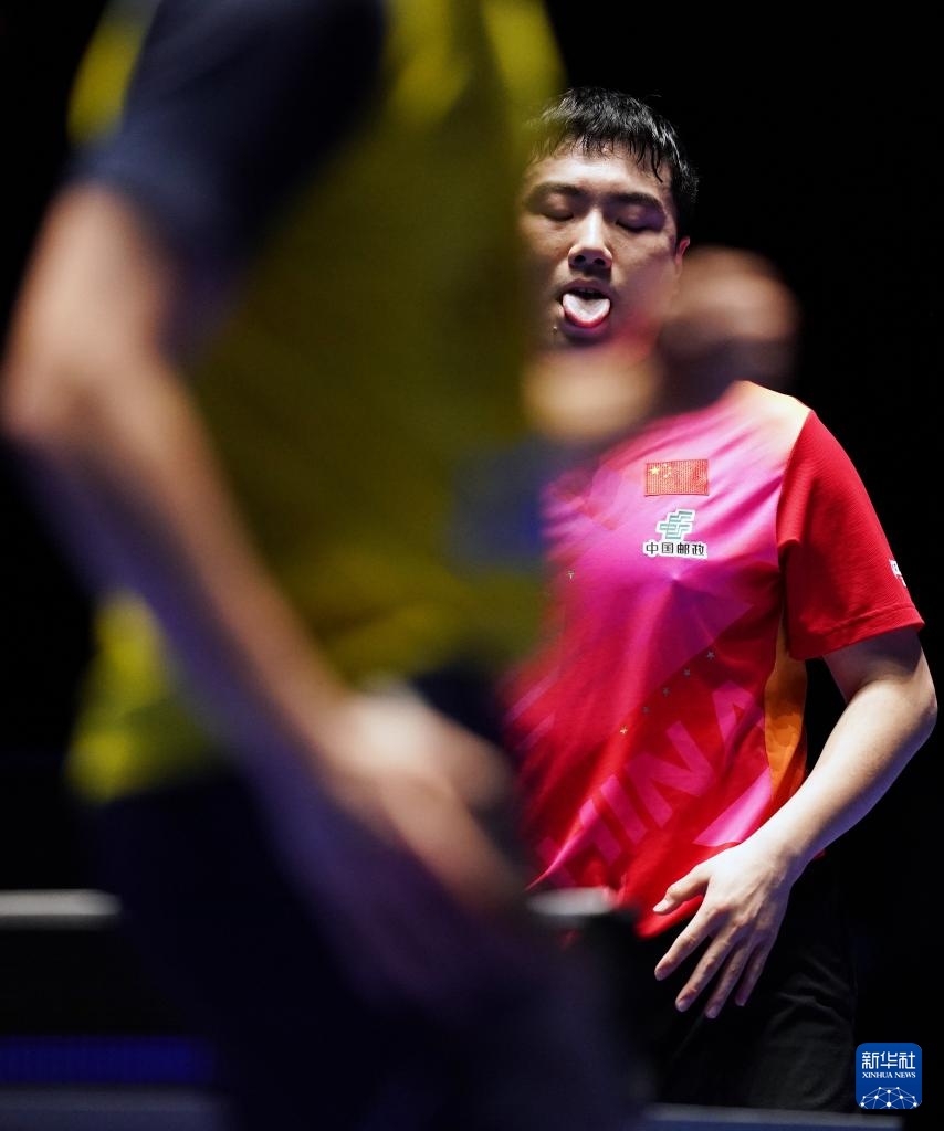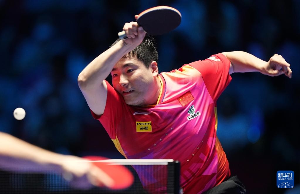 4月18日,中国选手梁靖崑在比赛中回球。新华社记者 王申 摄