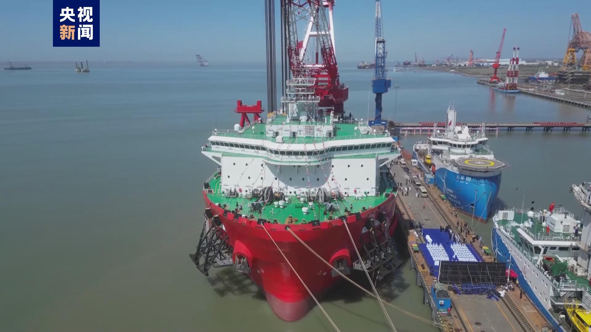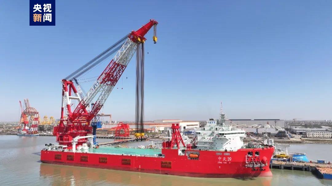 4月18日上午,国内领先、国际一流的5000吨自升自航式全回转起重船“中天39”轮在江苏启东举行交船仪式。